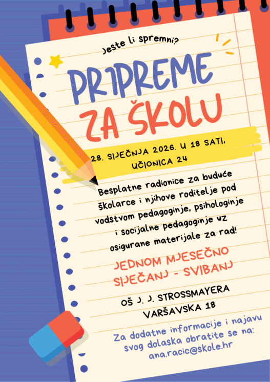 Nakon uspješne 1. godine provedbe i pozitivnih povratnih informacija nastavljamo i dalje kroz ciklus radionica pod vodstvom stručnih suradnica predškolarce pripremiti za što uspješniji početak budućeg školovanja. Područja koje naše radionice pokrivaju su: opće pripreme za školu, grafomotorika, spoznajne vještine, govor, predčitalačke vještine, predmatematičke vještine, socio – emocionalne vještine, pažnja i koncentracija. Radionice će se održavati u dinamici 1- 2 puta mjesečno u poslijepodnevnim satima. Trajanje jedne radionice je 60 minuta. Sve radionice, materijali kao i mogućnost dodatnih materijala za rad kod kuće su potpuno besplatni.