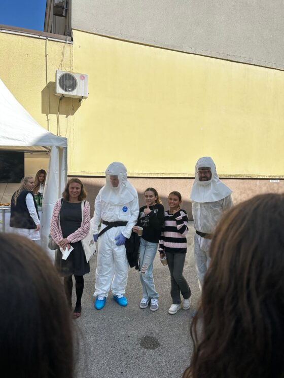 U srijedu 1. listopada Hrvatski je veterinarski institut prvi put otvorio svoja vrata posjetiteljima kako bi se javnost upoznala s aktivnostima, projektima i važnosti rada ovog instituta. Učenici sedmih razreda naše škole imali su priliku sudjelovati u obilasku šest različitih laboratorija, zanimljivim predavanjima iz područja kemije i biologije te vidjeti i čuti o životu mnogih primjeraka parazita i mikroorganizama. Cilj ovog posjeta bio je pokazati učenicima kako su biologija i kemija znanosti koje imaju izravan utjecaj na našu svakodnevicu. Analiza hrane koju jedemo mi i domaće životinje te zdravlje životinja s kojima smo u kontaktu svima nam je od velike važnosti. Predmeti Biologija i Kemija novi su i izazovni za naše sedmaše. Nadamo se da ih je ovo upoznavanje s istraživanjima i radom veterinarskog instituta potaknulo i dodatno motiviralo na učenje.